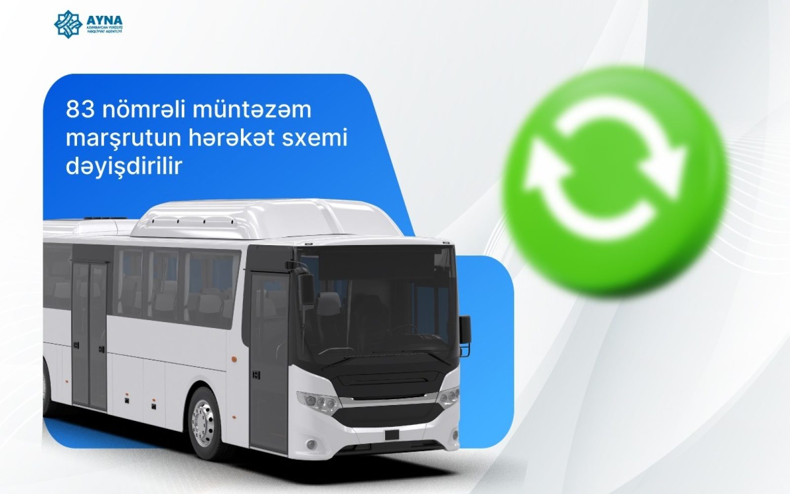 Biləcəri qəsəbəsindən Təbriz küçəsi istiqamətində fəaliyyət göstərən 83 nömrəli müntəzəm marşrutun hərəkət sxeminin dəyişdirilməsi ilə bağlı Azərbaycan Yerüstü Nəqliyyat Agentliyinə (AYNA) daxil olan müraciətlər nəzərə alınaraq marşrutun Biləcəri qəsəbəsi Məmməd Səid Ordubadi və Asəf Zeynallı küçələrinin kəsişməsində yerləşən dairəyədək uzadılması məqsədəuyğun hesab edilib.