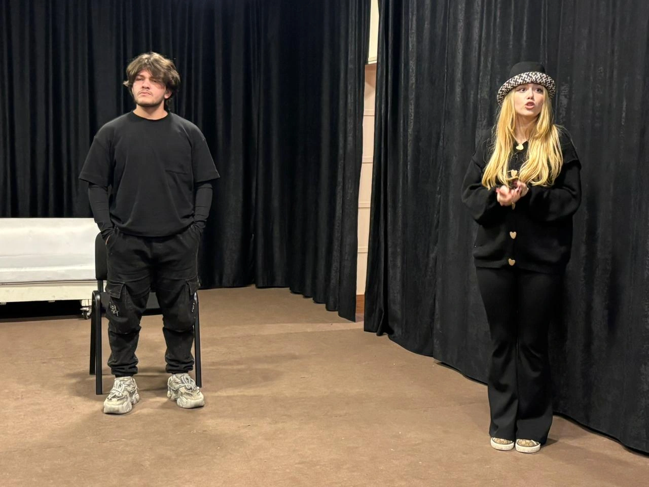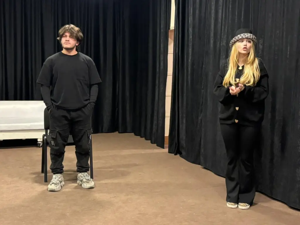Səhnə əsərində İncəsənət Universitetinin tələbələri Qriqori Stepanoviç Smirnov (Hüseyn Quluzadə), Yelena İvanovna Popova (Türkel Ələsgər), Anfisa (Nərmin Ağayeva) iştirak edirlər.