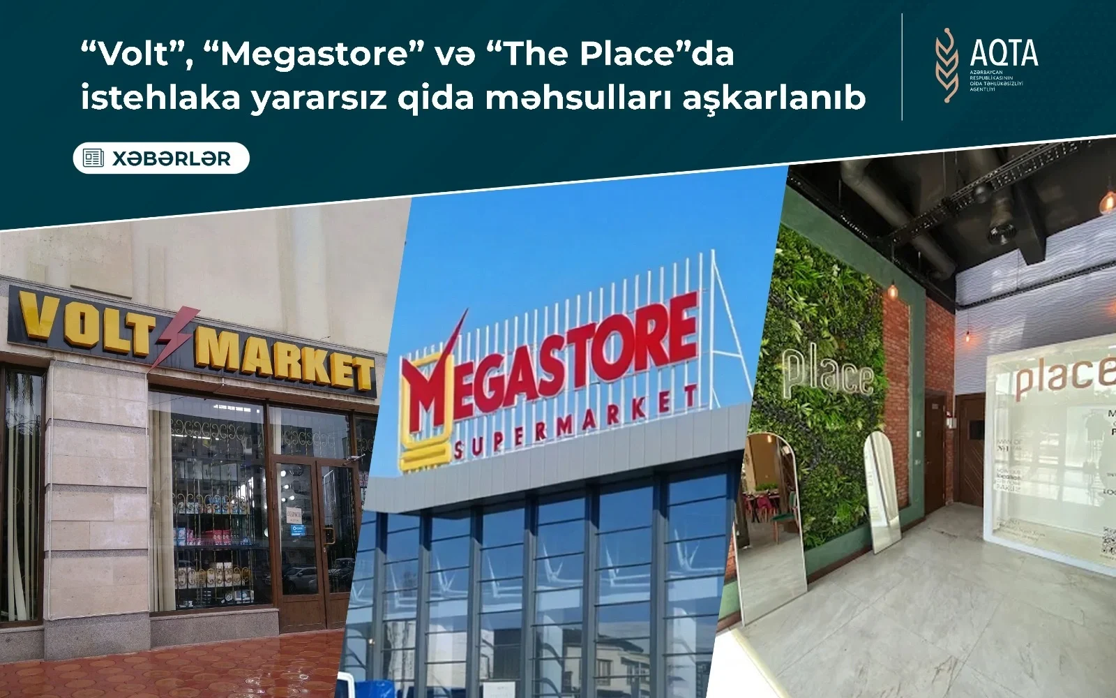 Azərbaycanda Qida Təhlükəsizliyi Agentliyinin əməkdaşları Bakı şəhərinin Nəsimi rayonu, X.Şuşinski küçəsində yerləşən, “Volt Services Azərbaycan” MMC-yə məxsus “Volt” marketdə, Nərimanov rayonu, A.Alı küçəsində yerləşən, “Grand-Mart” MMC-yə məxsus “Megastore” ticarət obyektində, Nəsimi rayonu, C.Məmmədquluzadə küçəsində yerləşən, “Our Company” MMC-yə məxsus “The Place” ictimai iaşə obyektində yoxlama keçirib.