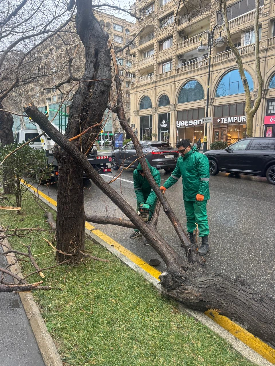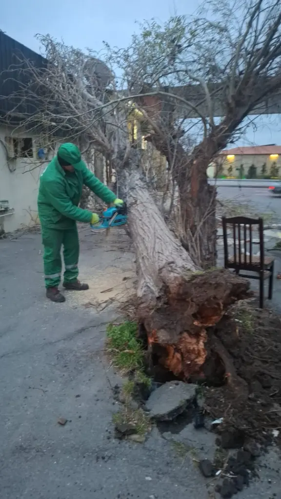 “Sınan ağaclar və qırılan budaqlar birliyin növbətçi briqadaları tərəfindən operativ şəkildə görütülür və ərazi təmizlənir”.