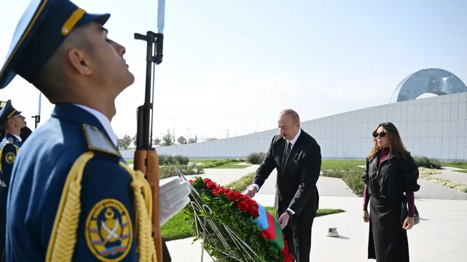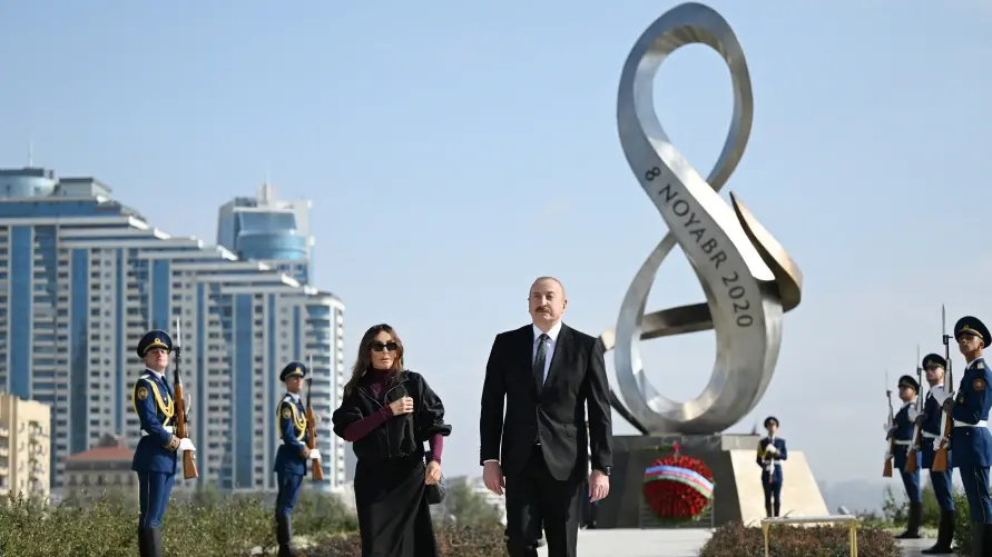 Azərbaycan Respublikasının Prezidenti İlham Əliyev və birinci xanım Mehriban Əliyeva Bakıda Zəfər abidəsini ziyarət edib və Zəfər muzeyinin açılışında iştirak ediblər.
