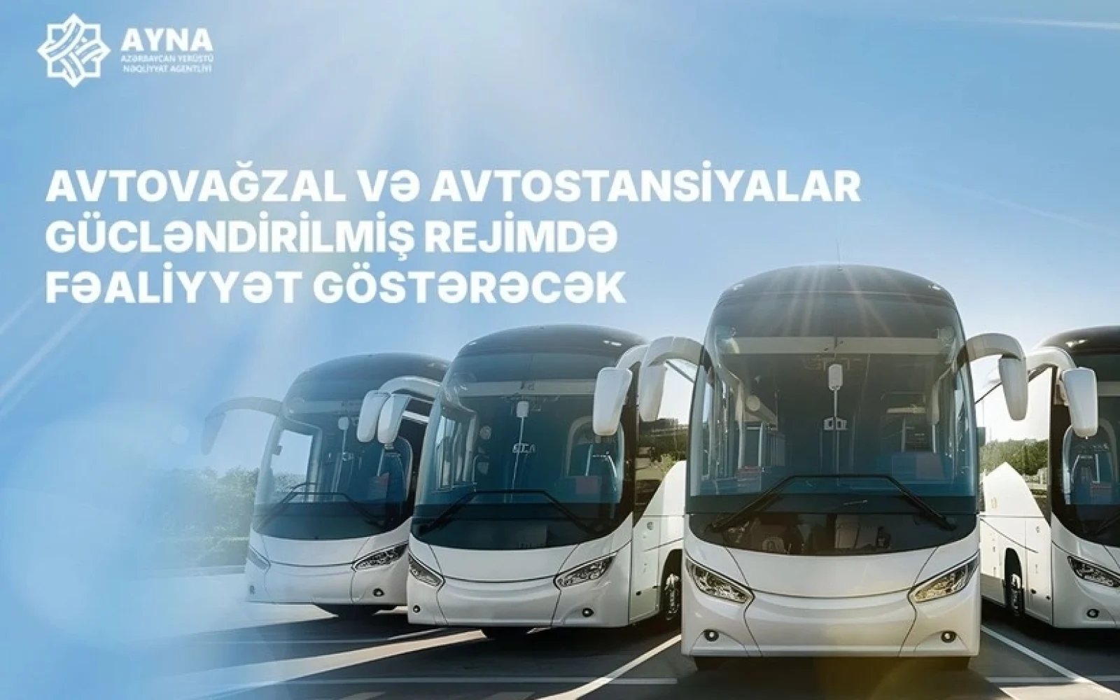Dünya Azərbaycanlılarının Həmrəyliyi Günü və Yeni il bayramı ilə əlaqədar 29 dekabr – 4 yanvar tarixlərində Azərbaycanın bütün avtovağzal və avtostansiyaları gücləndirilmiş iş rejimində fəaliyyət göstərəcək.