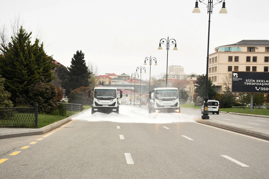 Bildirilib ki, səhər saatlarından etibarən Bakı Şəhər İcra Hakimiyyətinin kommunal təsərrüfat xidmətlərinin texnikası tərəfindən şəhərin 555 əsas küçə, prospekt və məhəllədaxili yolların yuyucu maddələrlə yuyulması təmin edilib.
