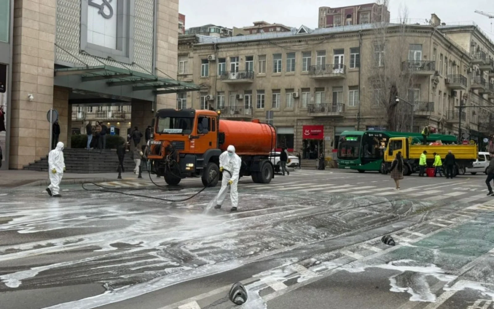 Bildirilib ki, səhər saatlarından etibarən Bakı Şəhər İcra Hakimiyyətinin kommunal təsərrüfat xidmətlərinin texnikası tərəfindən şəhərin 555 əsas küçə, prospekt və məhəllədaxili yolların yuyucu maddələrlə yuyulması təmin edilib.