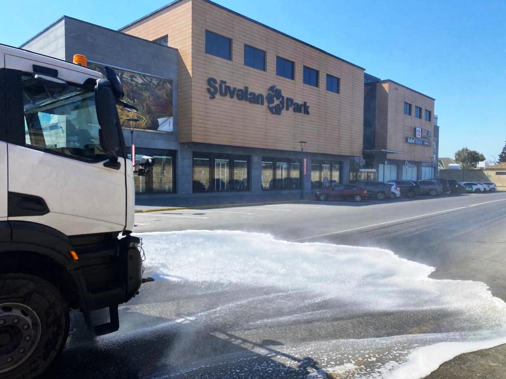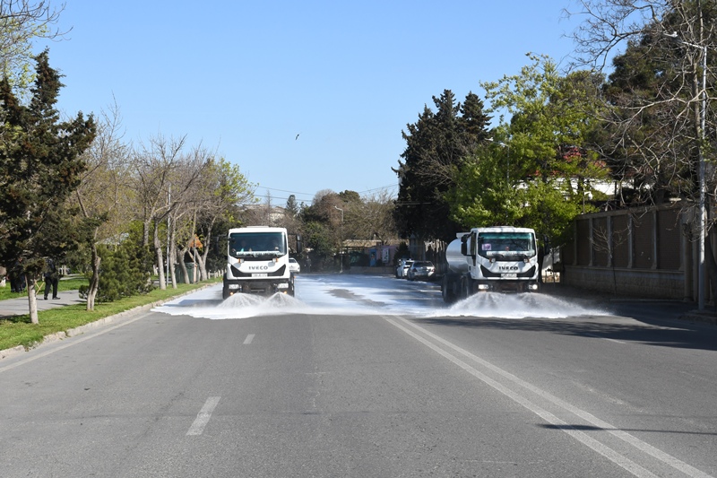 Baki-baku.az xəbər verir ki səhər saatlarından etibarən Bakı Şəhər İcra Hakimiyyətinin kommunal təsərrüfat xidmətlərinin texnikası tərəfindən şəhərin və qəsəbələrin 556 küçəsi və məhəllədaxili yolların yuyucu maddələrlə yuyulması təmin edilib.