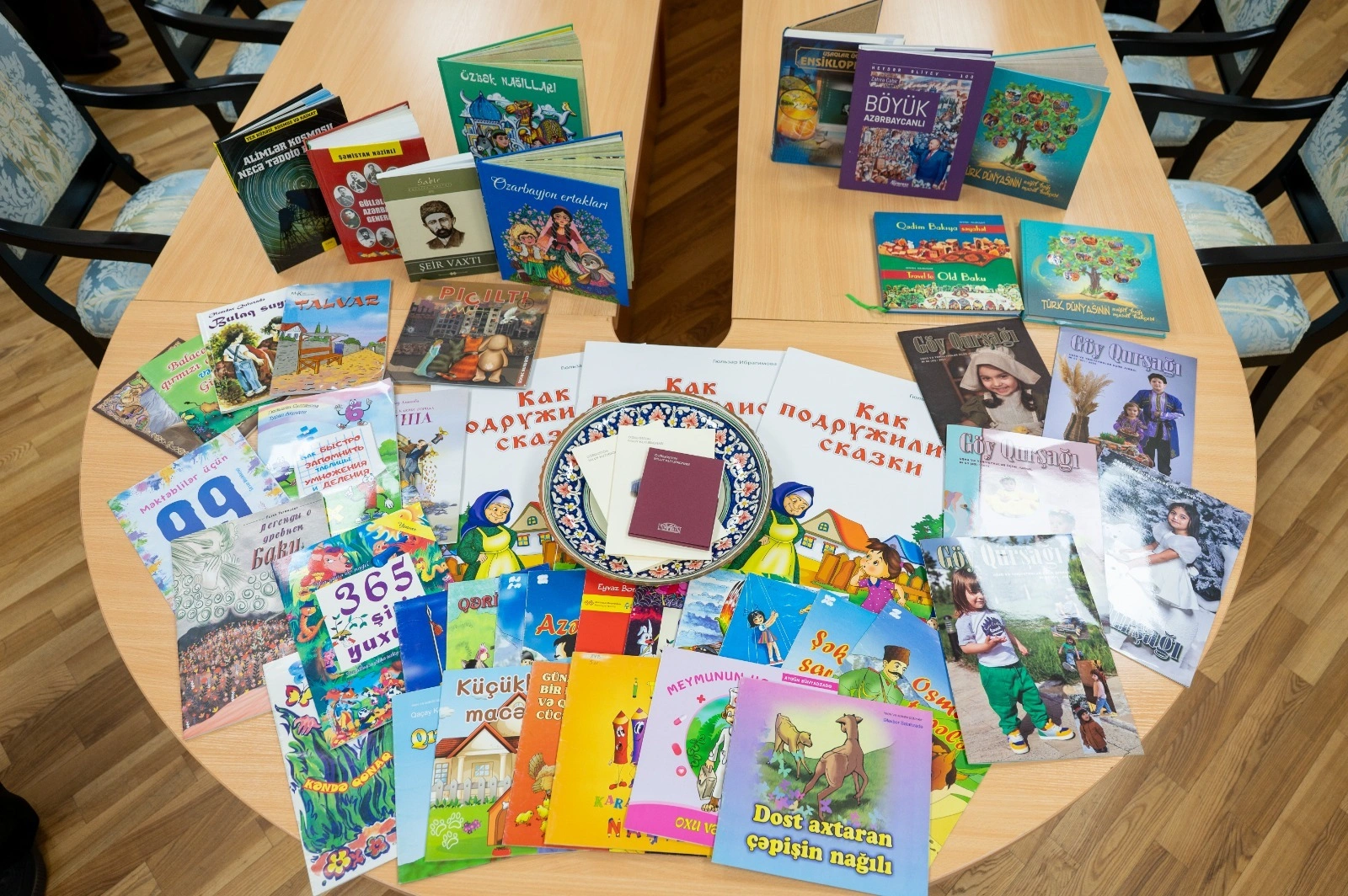 Təqdimatdan öncə ölkəmizin nümayəndə heyəti Özbəkistan Milli Kitabxanasında olub. Qonaqlara kitabxananın tarixi və fondları haqqında ətraflı məlumat verilib. Görüş çərçivəsində Özbəkistanın Respublika Uşaq Kitabxanasına və Milli Kitabxanaya Azərbaycan uşaq ədəbiyyatı ilə bağlı 400-dən artıq nəşr hədiyyə olunub. Həmin nəşrlər arasında iki qardaş xalqın nağıllarının tərcümələri də var.