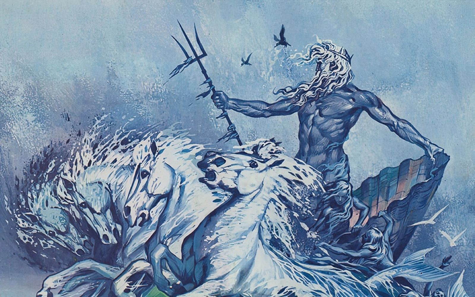 Dənizin dərinliklərində ildırım sahibi Zevsin qardaşı — dənizlərin və yeraltı suların hökmdarı olan qüdrətli Poseydonun möhtəşəm sarayı ucalır. O, su ünsürünə hökm edir və əlində sıxdığı qorxunc üçdişli nizənin ən kiçik hərəkəti ilə belə dalğalar ona itaət edir.