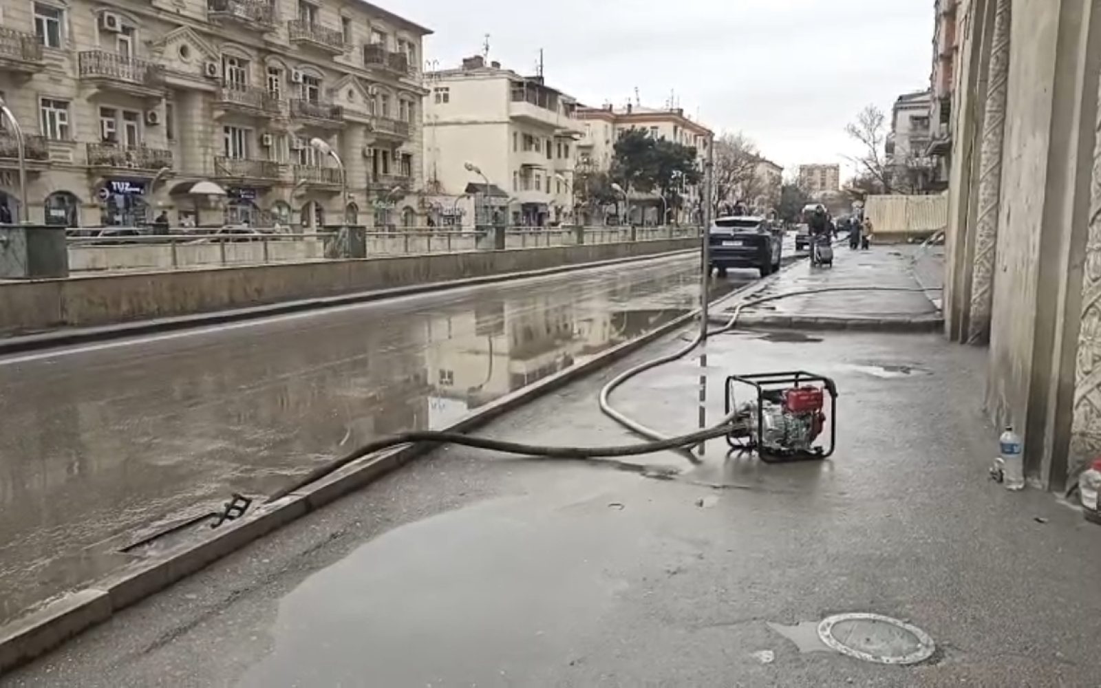 Heydər Əliyev prospekti yağıntı nəticəsində yığılmış sulardan təmizlənib.