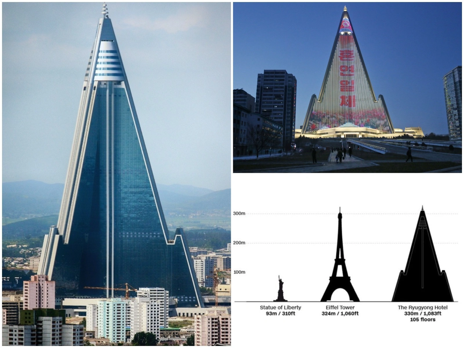 Söhbət Pxenyanın mərkəzində yerləşən, hündürlüyü 330 metr olan beton piramidadan — Ryugyong Hotel-dən gedir.