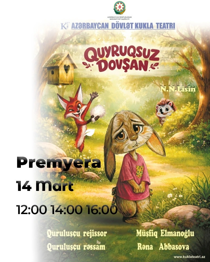Martın 14-də Azərbaycan Dövlət Kukla Teatrında “Quyruqsuz Dovşan” tamaşasının premyerası olacaq.