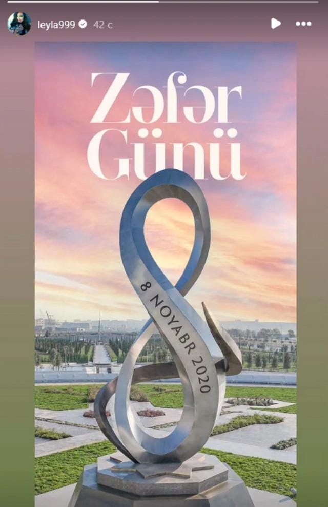 Heydər Əliyev Fondunun vitse-prezidenti, IDEA İctimai Birliyinin təsisçisi və rəhbəri Leyla Əliyeva 8 Noyabr – Zəfər Günü ilə bağlı rəsmi “Instagram” hesbaının hekayə bölümündə paylaşım edib.