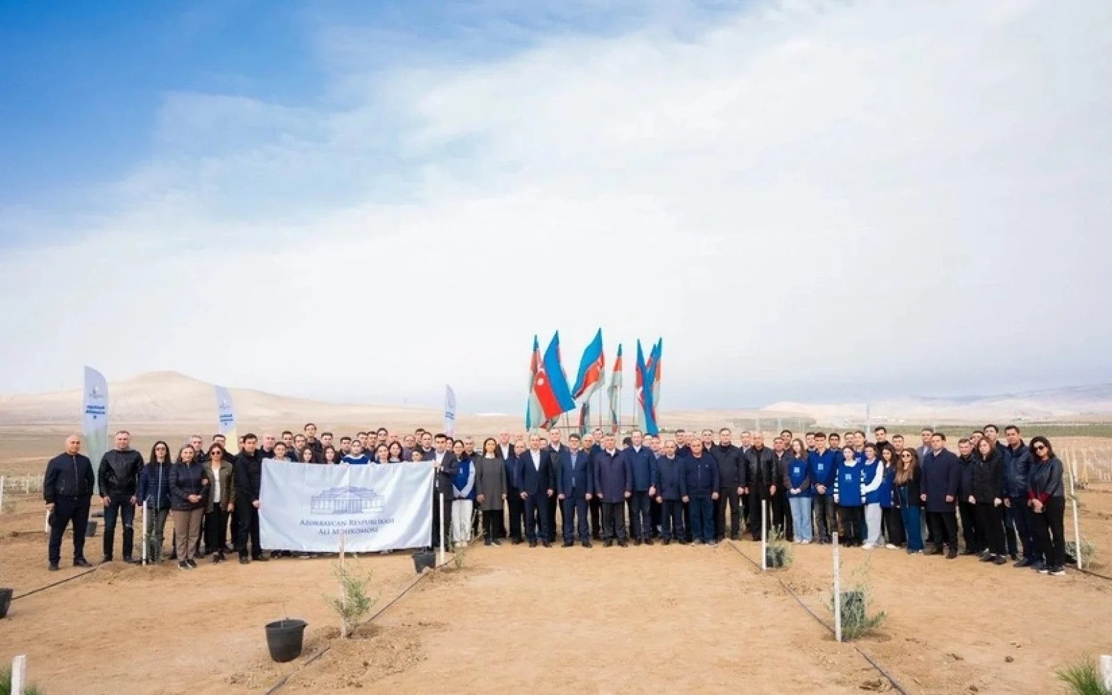 Tədbir çərçivəsində Abşeron yarımadasının torpaq-iqlim şəraitinə uyğun Eldar şamı və zeytun ağacları əkilib.