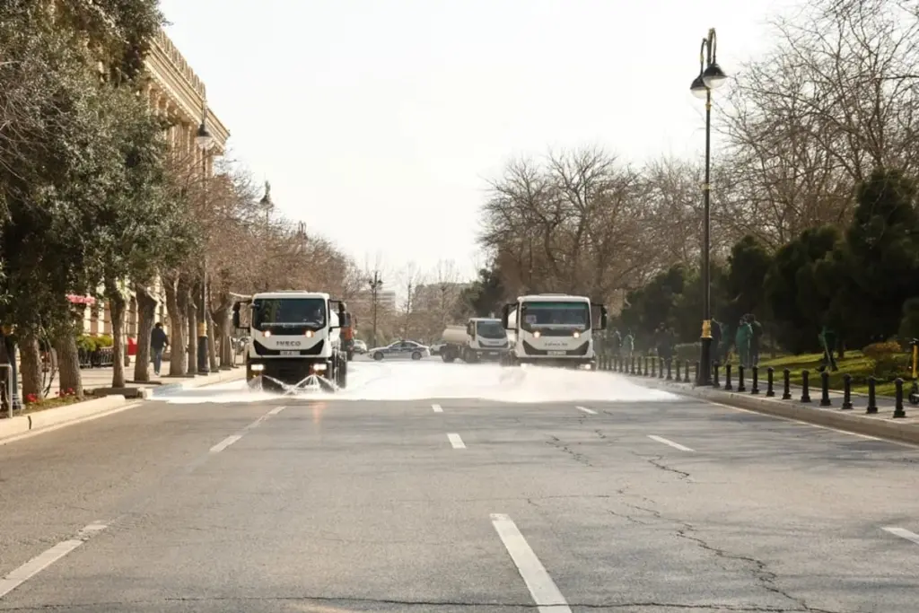Bakı Şəhər İcra Hakimiyyətinin Mətbuat xidmətindən Baki-baku.az-a verilən məlumata görə, səhər saatlarından etibarən icra hakimiyyətinin kommunal təsərrüfat xidmətlərinin texnikası tərəfindən şəhərin 537 əsas küçə və prospektlərin yuyucu maddələrlə yuyulması təmin edilib, eyni zamanda genişmiqyaslı təmizlik və abadlıq işləri həyata keçirilib.