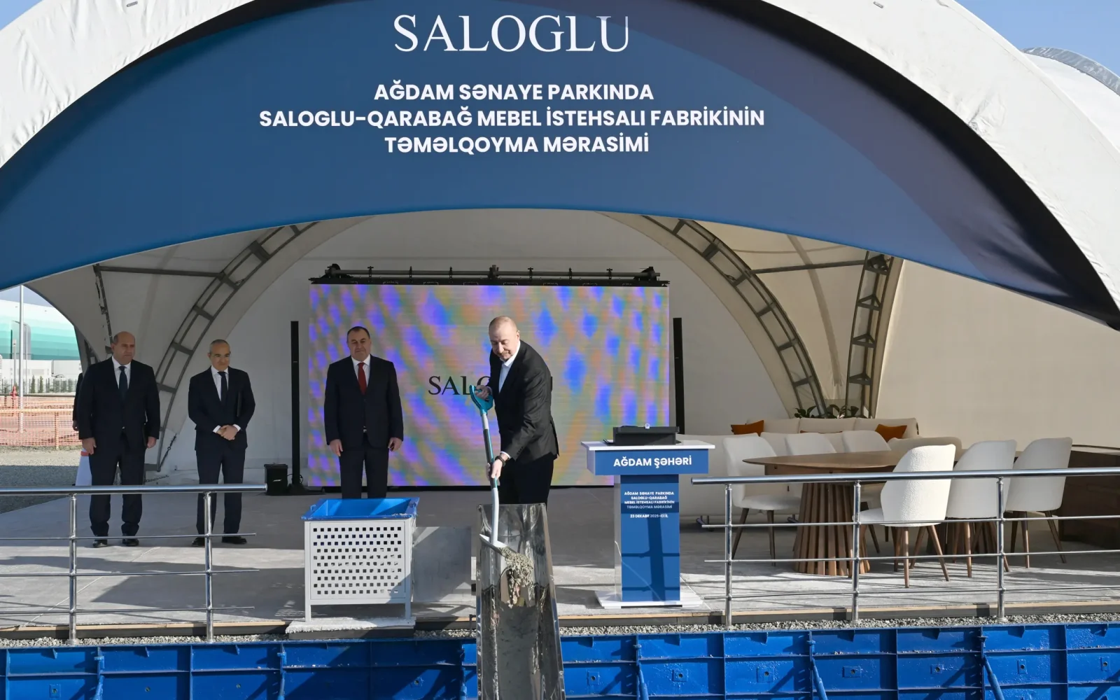 Azərbaycan Respublikasının Prezidenti İlham Əliyev dekabrın 23-də Ağdam Sənaye Parkında “Saloğlu Qarabağ” MMC-nin istehsal müəssisəsinin təməlini qoyub.