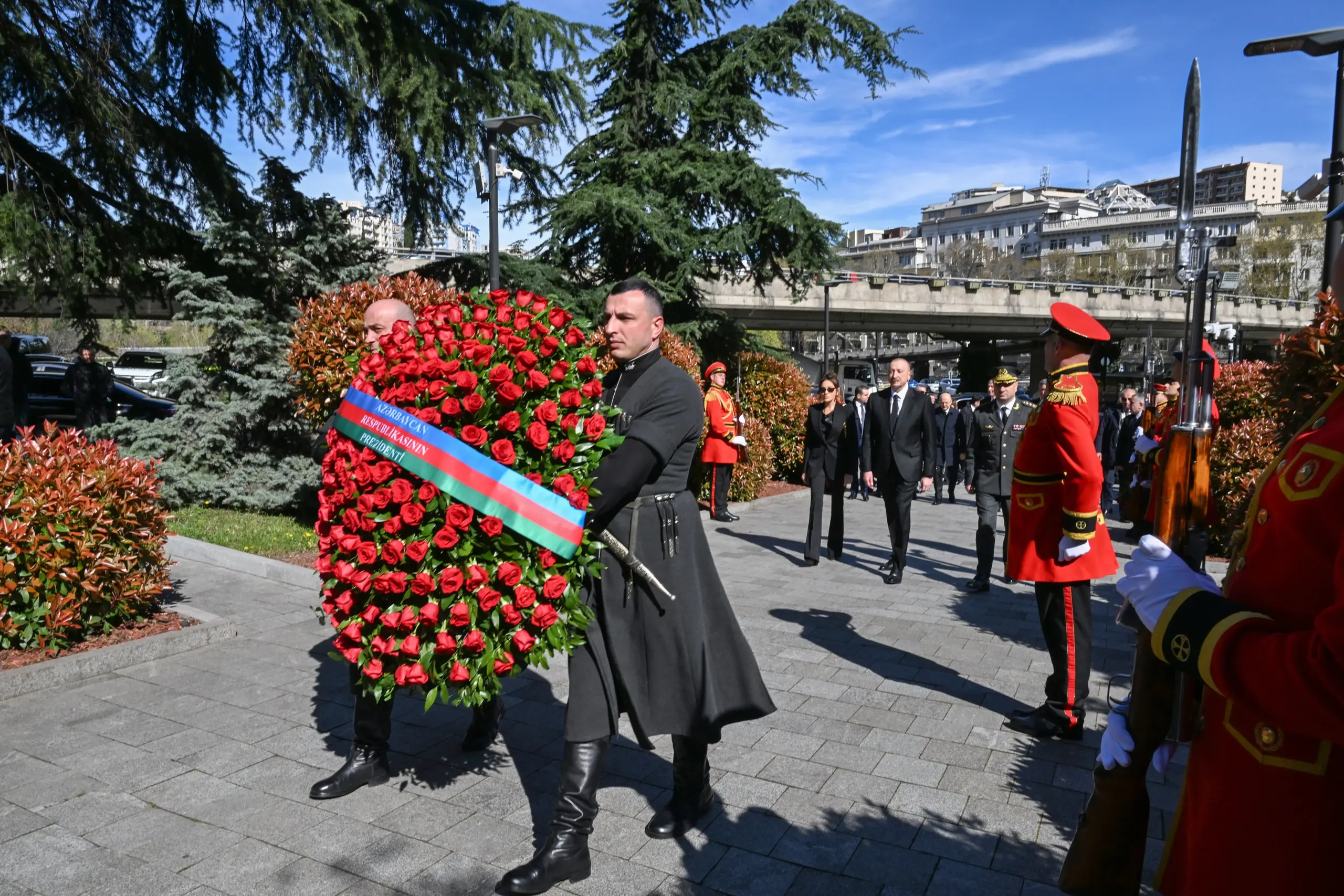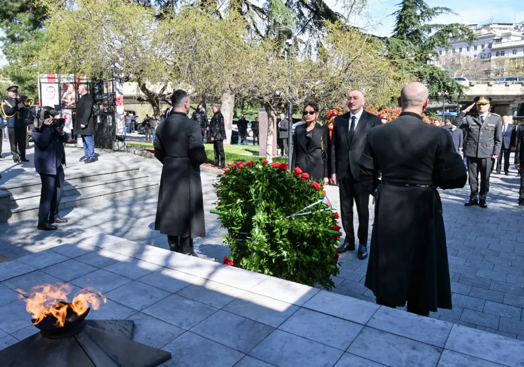 Azərbaycan Respublikasının Prezidenti İlham Əliyev və birinci xanım Mehriban Əliyeva aprelin 6-da Tbilisidə Qəhrəmanlar Memorialını ziyarət ediblər.