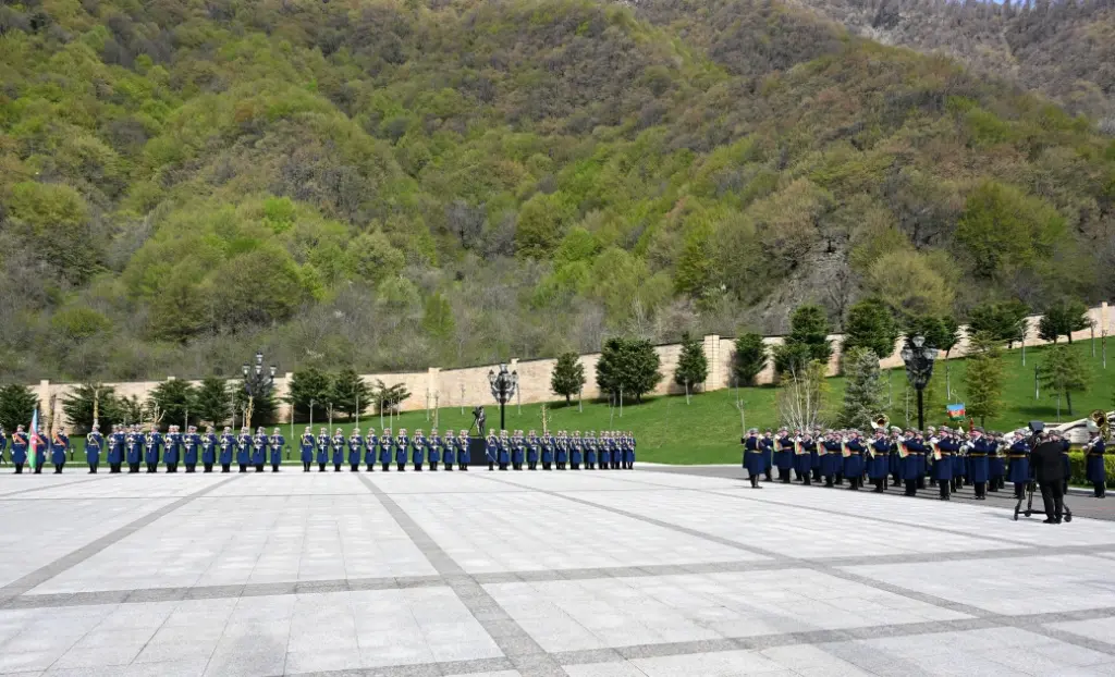 Под звуки военного марша почетный караул прошел перед Президентом Азербайджана Ильхамом Алиевым и Премьер-министром Чехии Андреем Бабишем.