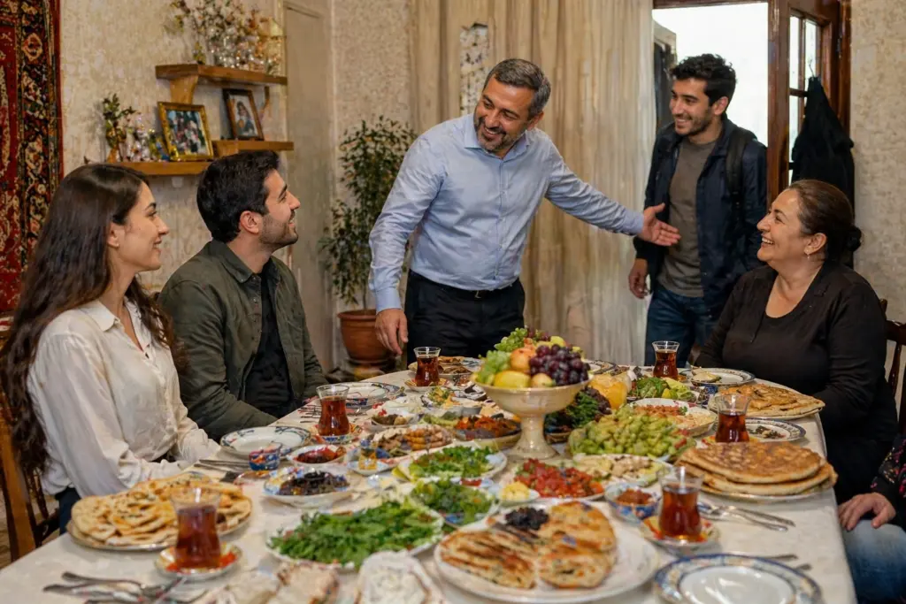 В азербайджанской культуре, особенно в Баку, гостеприимство — одна из высших ценностей. Когда в дом приходит гость, хозяин отодвигает свои потребности на второй план. Фраза «двери моего дома всегда открыты для тебя» — не пустые слова. Это реальное правило поведения. Гостю дают лучшее место, накрывают богатый стол, и разговор может длиться часами.