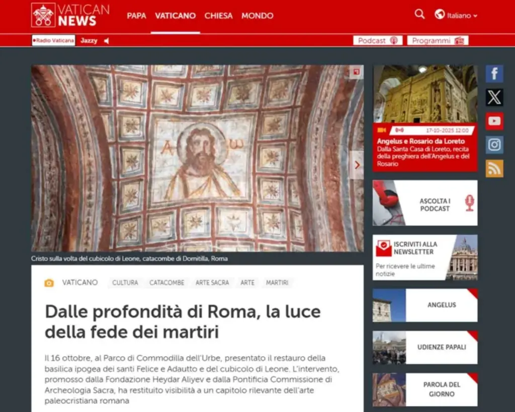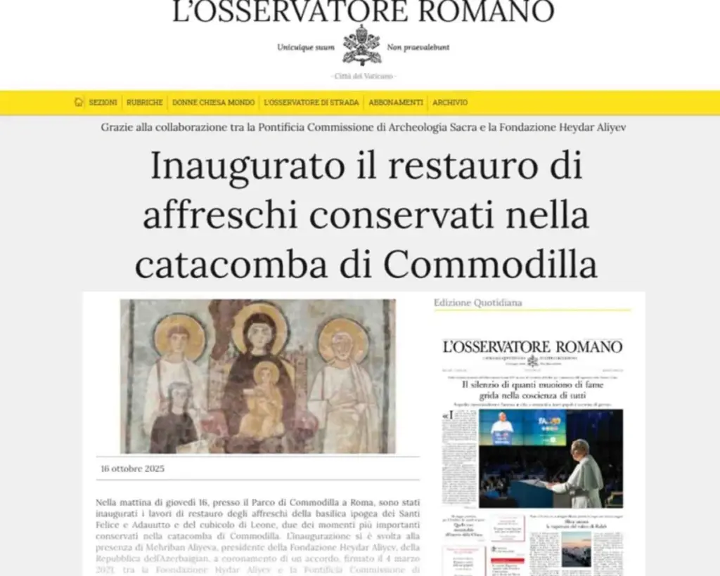 Информационные ресурсы Святого Престола уделили особое внимание открытию 16 октября проекта реставрации катакомб Святой Коммодиллы при участии Первого вице-президента Азербайджана Мехрибан Алиевой.