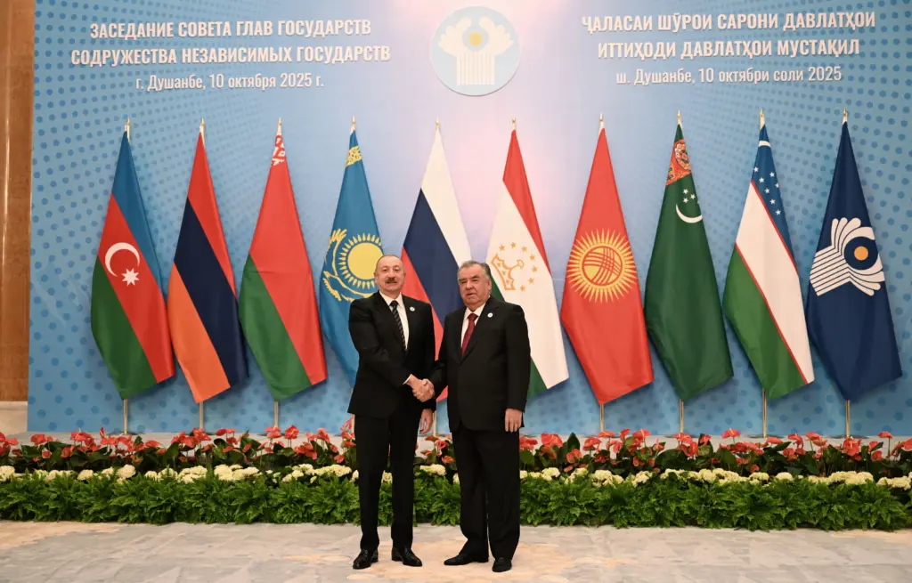 Президент Ильхам Алиев прибыл во Дворец наций в Душанбе для участия в заседании Совета глав государств СНГ