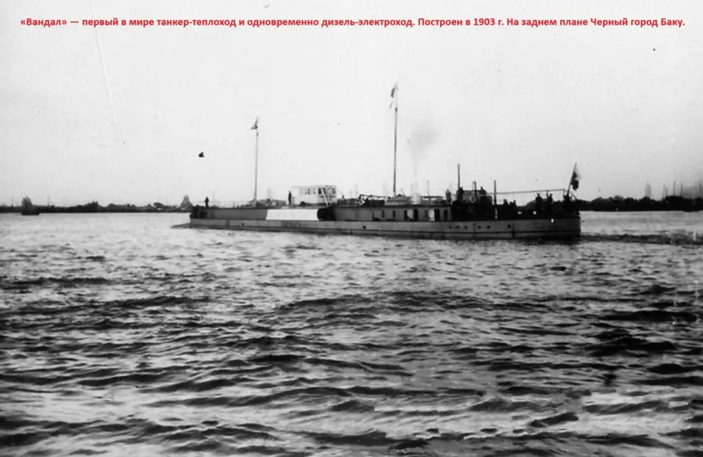 Новая веха была взята в 1903 году, когда Нобели построили танкер «Вандал». Он вошёл в историю как первый в мире теплоход и одновременно первый дизель-электроход. Это был технологический скачок, опередивший своё время: дизельные двигатели работали на нефти, которую судно же и перевозило. Вслед за «Вандалом» появились его «братья» — «Сармат» и «Скиф», предназначенные для работы на Волге, где нефть Нобелей уходила вглубь Российской империи.