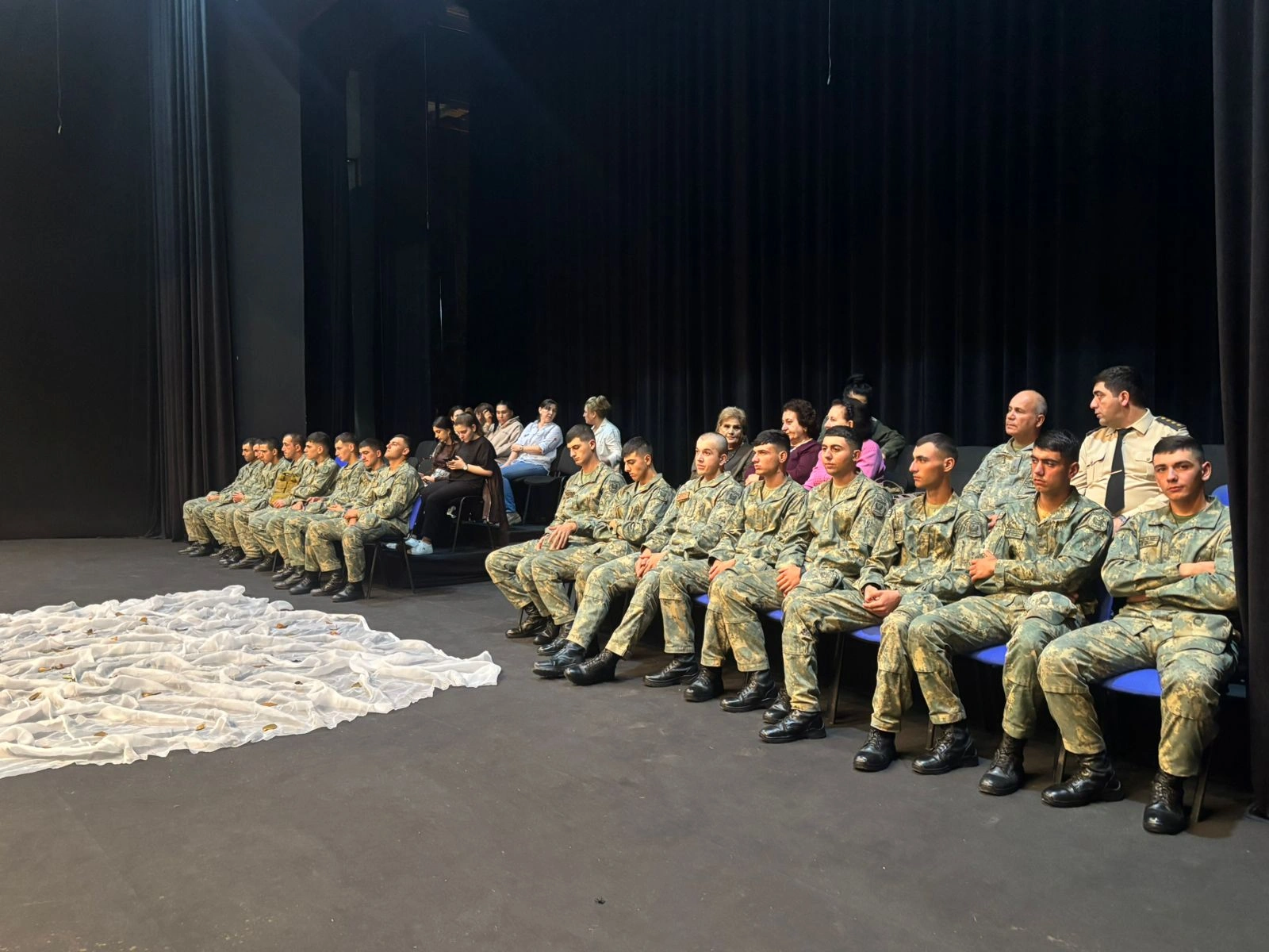 Постановка, завершившаяся под аплодисменты солдат и офицеров воинской части Министерства обороны Азербайджанской Республики, подарила зрителям трогательные минуты.