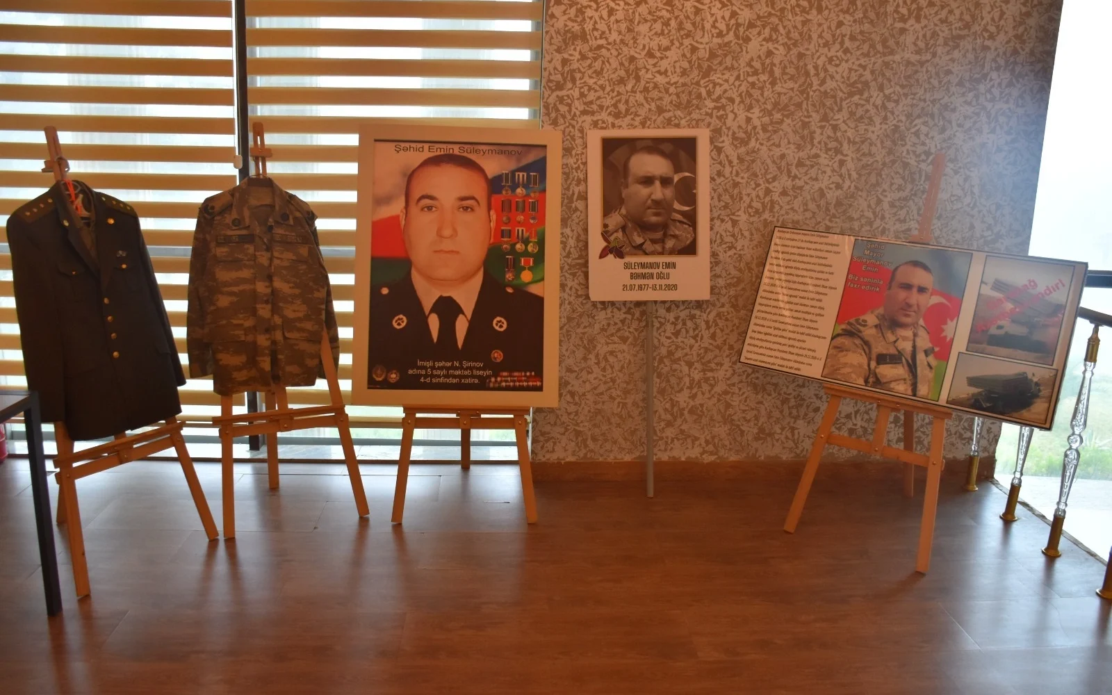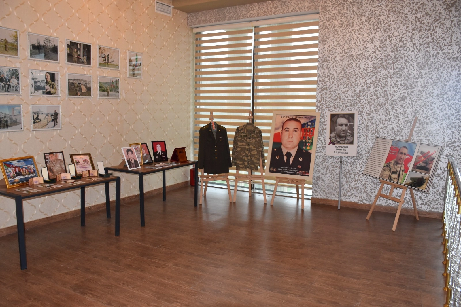 Əvvəlcə tədbir iştirakçıları şəhid mayor Emin Süleymanovun xatirəsinə həsr olunmuş guşə ilə tanış olublar. Burada şəhidin portretləri, hərbi geyimi, şəxsi əşyaları və döyüş yolunu əks etdirən materiallar nümayiş etdirilib.
