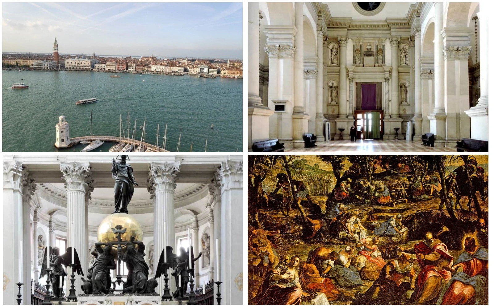 1521-ci ildə yeni məbədin inşası barədə qərar qəbul edilir. Layihənin icrası 1566-cı ildən 1610-cu ilə qədər davam edir. Memar qismində Andrea Palladio çıxış edir, onun ölümündən sonra isə tikintini şagirdi Vinçenso Skamossi tamamlayır. Ada XIX əsrin əvvəllərinə qədər Benediktinlərin mülkiyyətində qalır, ta ki Napoleon Bonapart buranı hərbi ərazi elan edənə, monastırı bağlayıb orada artilleriya anbarları yerləşdirənə və Riva-del-Skyavoni sahilindən bu gün də görünən iki kiçik qüllə ucaldana qədər.