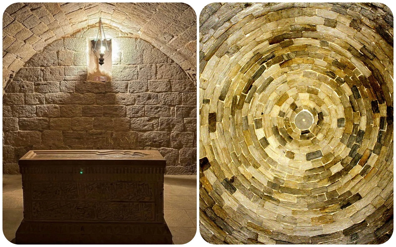 Günbəzin daxili səthindəki naxışlar kainatın sonsuzluğunu xatırladan simvolik bir obraz yaradır. İşıq isə dünyanın dörd istiqamətinə yönəlmiş kiçik pəncərələrdən süzülərək bu mistik atmosferi daha da gücləndirir.