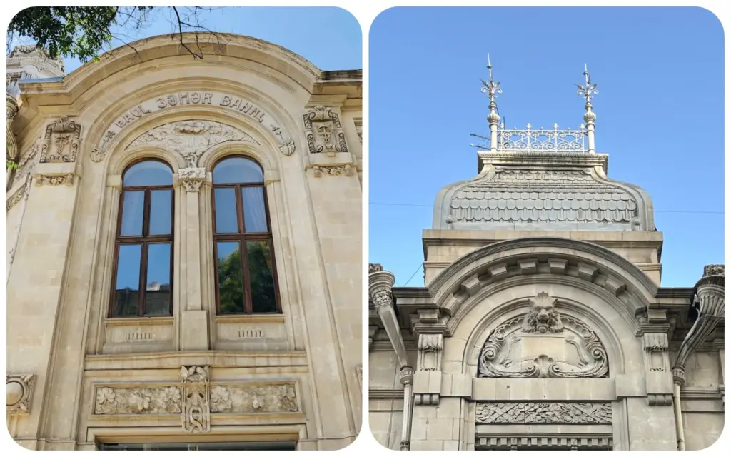 Binanın eksteryeri xüsusilə diqqətəlayiqdir. Neft bumu dövrü Bakısına xas olan zəngin dekorativlik burada özünü təmkinli, lakin ifadəli formada göstərir. Bitki motivləri, yumşaq xətli elementlər və fasadın ritmik bölgüsü binaya həm monumental, həm də estetik baxımdan cəlbedici görkəm verir. Bu xüsusiyyətlər onu Bakıda inşa edilmiş möhtəşəm bank binaları sırasında önəmli mövqeyə çıxarır.