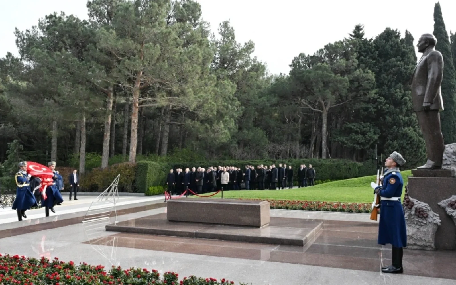 Baki-baku.az xəbər verir ki, əvvəlcə müasir müstəqil Azərbaycan dövlətinin qurucusu, xalqın Ümummilli Lideri Heydər Əliyevin əziz xatirəsi ehtiramla anılıb, məzarı önünə əklil qoyulub.