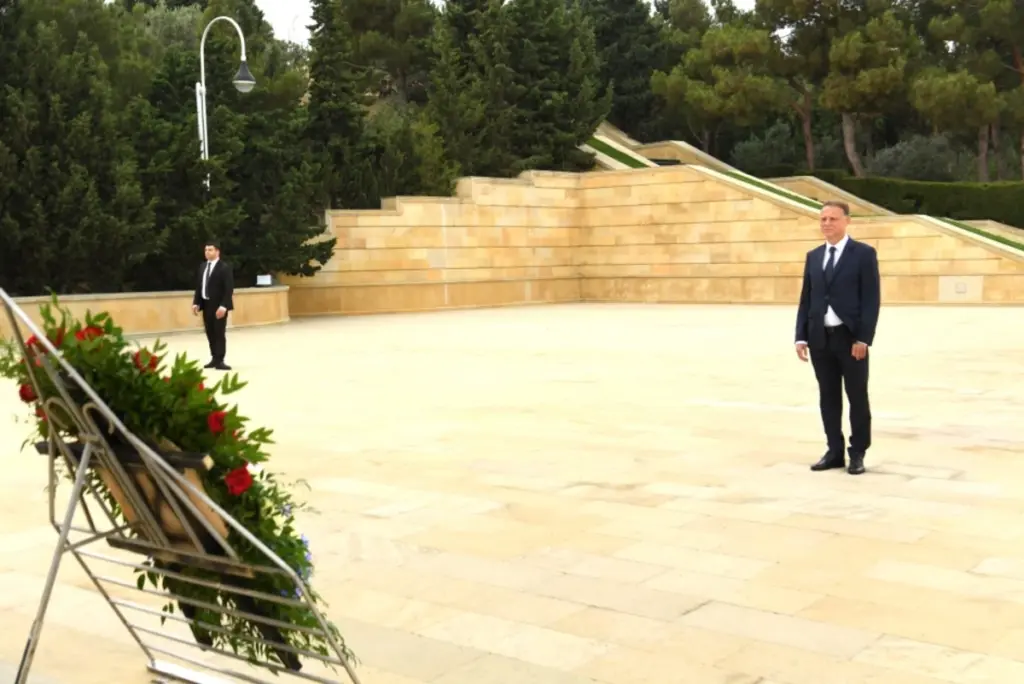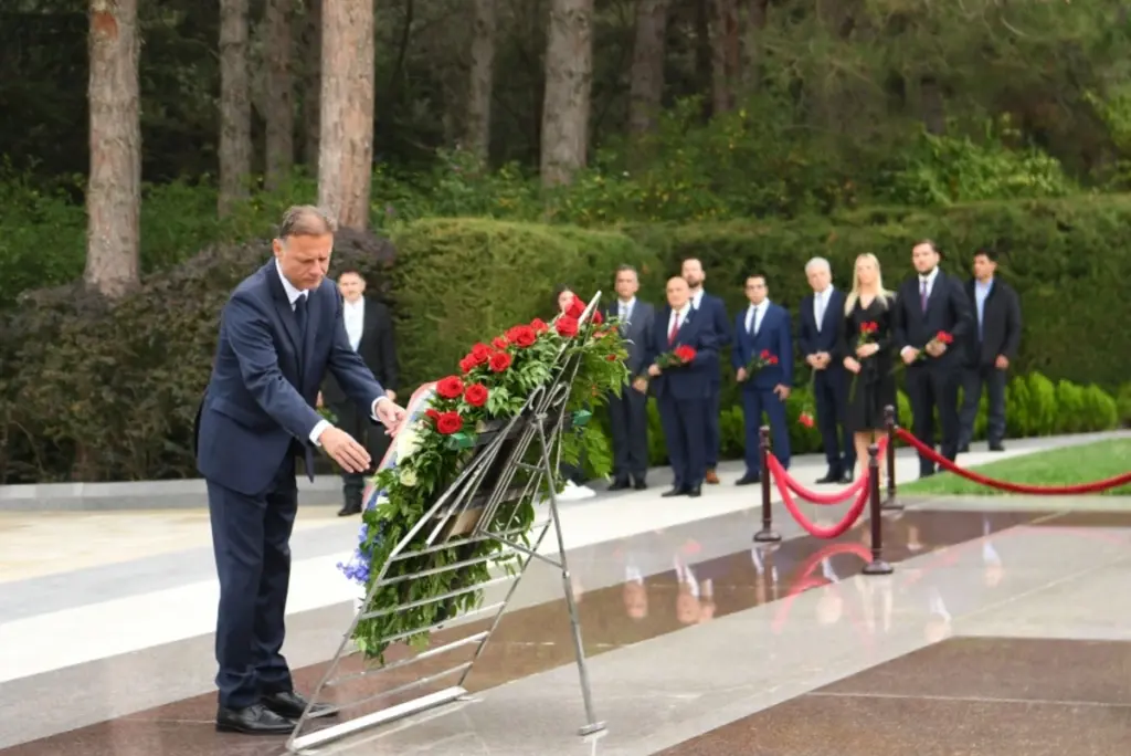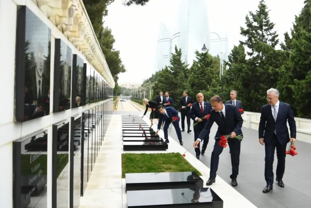 Sonra nümayəndə heyəti Şəhidlər xiyabanına gələrək Azərbaycanın azadlığı və suverenliyi uğrunda mübarizədə canlarından keçmiş qəhrəman Vətən övladlarının xatirəsini ehtiramla anıb, məzarları üzərinə tər çiçəklər düzüb, “Əbədi məşəl” abidəsi önünə əklil qoyub.